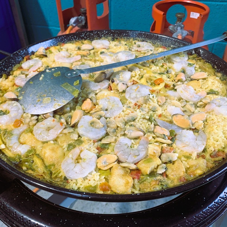 Paella de Carne: Chicken & Chorizo, Paella de Verduras: Mixed Vegetable, Paella de Marisco: Mixed Seafood, NEW Paella Inglese: Chicken, Prawn & Chorizo, NEW Paella de la Abuela: Chicken, Seafood & Whole Prawns